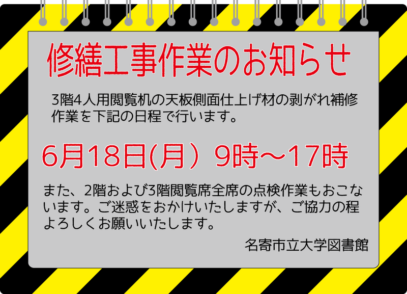 そのため以下の日程で新館と図書館の渡り廊下が閉鎖されます。