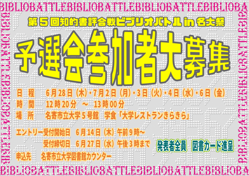 【第4回知的書評合戦ビブリオバトルin名大祭本戦のお知らせ】
