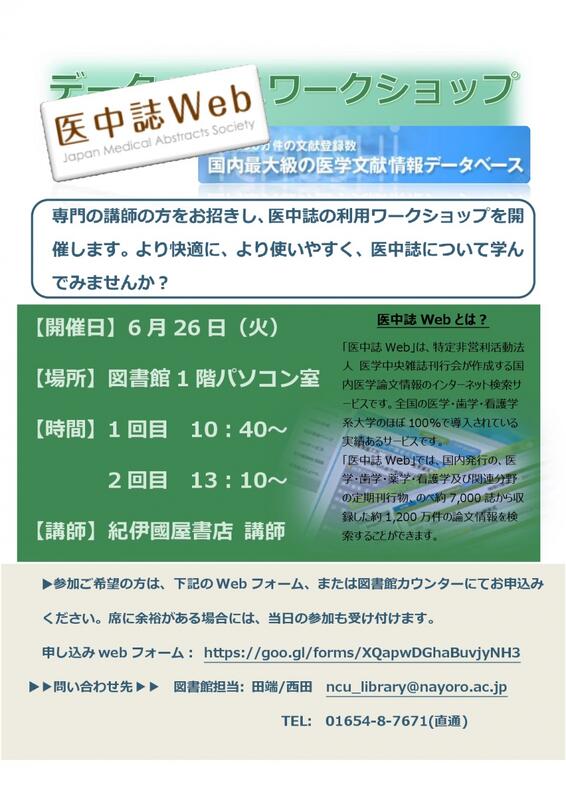 本学で導入している「Academic Search Premir」と「CINAHL Plus FullText」について、専門の講師をお迎えし、実習形式を取り入れた講習会を開催しますので、この機会にぜひご参加ください。