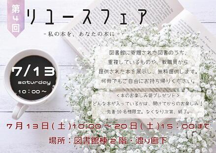 7月13日(土)~20日(土)の一週間、本のリユースフェアを開催いたします。